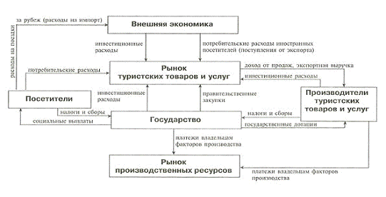 Рост капитальных вложений и увеличение реального объема производства, вызванные повышением туристского спроса, являются верными признаками активизации экономической деятельности. Импульс роста, зародившийся в сфере туризма, передается по цепочке другим отраслям экономики. В них разворачивается инвестиционная деятельность, создаются новые рабочие места, расширяется торговый оборот и, как следствие, увеличиваются доходы - заработная плата, рента, процент и прибыль. Часть полученных доходов, которая также имеет тенденцию роста, поступает государству в форме налогов. Кроме того, казна пополняется за счет импортных таможенных пошлин. Собранные таким образом средства вновь могут быть направлены на финансирование туристских проектов, оказание материальной помощи при организации отдыха социально уязвимых групп населения, на развитие системы профессиональной подготовки туристских кадров и т.д.