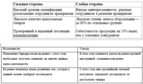 проводить SWOT-анализ деятельности организации собственными силами руководства