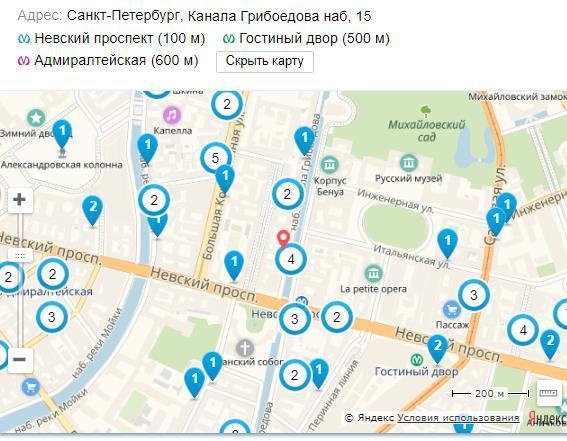 Если взять выборку конкурентов по геоположению (например, по метро Невский проспект), по данным картограммы на сайте Авито на одно метро приходится как минимум 30-40 объектов недвижимости от разных собственников [54], (см. Рисунок 1).