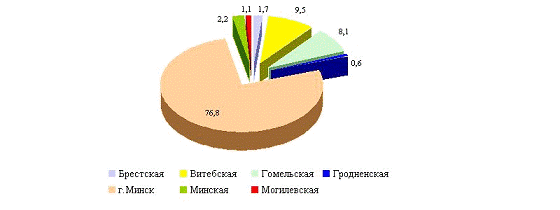 Могилевская область - 1,1%; Гродненская область - 0,6% (рисунок 2.4) [29].