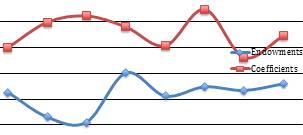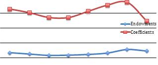 Динамика компонент Endowmentsи Coefficientsв декомпозиции Оаксаки-Блайндера для зависимой переменной lnta