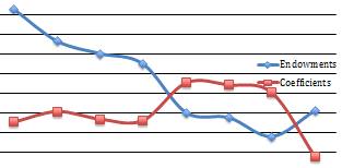 Динамика компонент Endowmentsи Coefficients в декомпозиции Оаксаки-Блайндера для зависимой переменной lnni