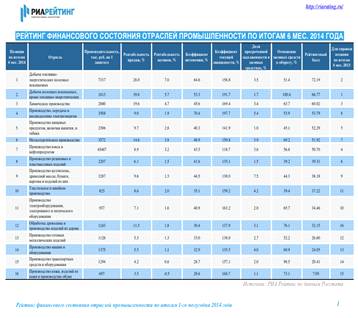 Рейтинг финансового состояния отраслей промышленности России по итогам 6 месяцев 2014 года