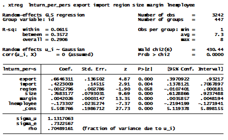Результат регрессионного анализа в модели FE для зависимой переменной lnturn_per_pers