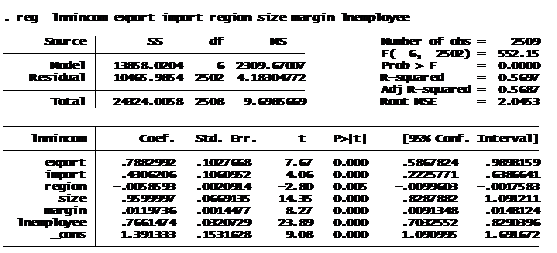 Результат регрессионного анализа модели pooledс зависимой переменной lnni