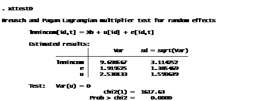 Тест Бройша-Пагана для сравнения моделей REи pooledс зависимой переменной lnnin