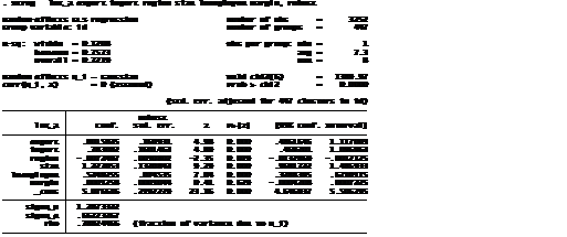 Сравнение оценки коэффициента при переменной экспорта в доверительном интервале в моделях REи Hausman-Tailorдля зависимых переменных lntaи lnni