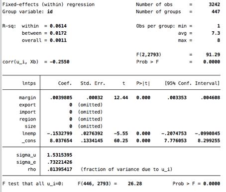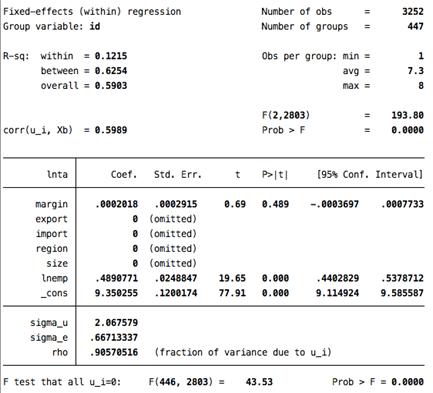 Результат регрессионного анализа в модели FEдля зависимой переменной lnta