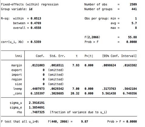 Результат регрессионного анализа в модели FE для зависимой переменной lnni