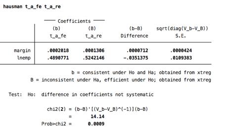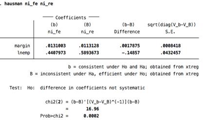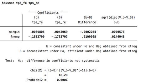Результат теста Хаусманадля зависимой переменной lnturn_per_pers