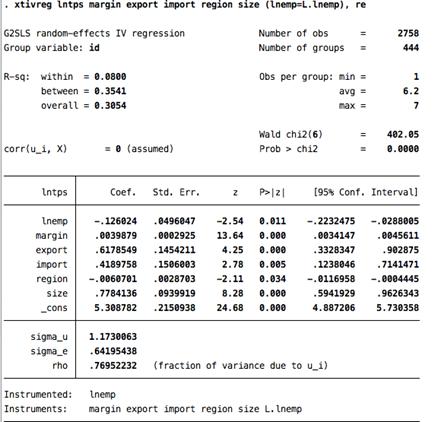 Результат регрессионного анализа для зависимой переменной lntps методом инструментальной переменной