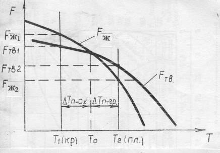 При Т1 Fтв1 < Fж1 - энергетически выгодно твердое состояние.