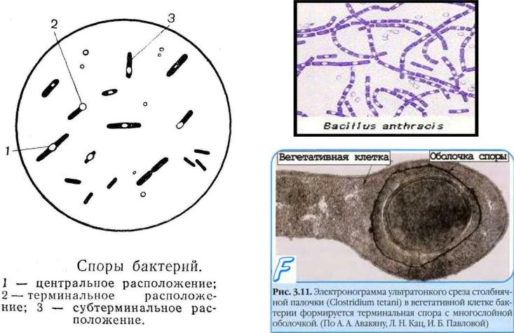 Расположение споры в клетке может быть центральным, субтерминальным, терминальным.