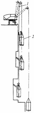 Рис. 57. Самоподъемная подвесная люлька: 1 – ловители; 2 – ручные или реверсивные лебедки; 3 – электрооборудование;