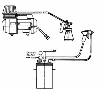 Окрасочные агрегаты пневматического распыления разделяют на переносные и передвижные (рис. 142).
