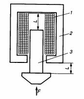 Рис. 182. Электромагнитный управляющий элемент: 1 – электромагнитныйвалкатушки; 2 – корпус; 3 – металлический якорь