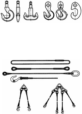 Крюки (рис. 25) служат для подвешивания штучных грузов и специальных захватных приспособлений к канатам, они могут быть однорогие и двурогие.