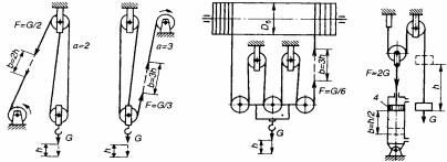 Подвижная обойма имеет крюк или петлю для захвата груза, неподвижная крепится к элементу конструкции. Полиспасты применяют для выигрыша в силе (редукторные полиспасты) или в скорости (мультипликаторные полиспасты). В строительных машинах наибольшее применение получили редукторные полиспасты, уменьшающие натяжения каната, грузовой момент и передаточное число механизма привода при соответствующем проигрыше в скорости подъема груза. Мультипликаторные полиспасты используют реже, в основном в гидравлических подъемниках, погрузчиках, механизмах выдвижения телескопических стрел кранов, экскаваторов.