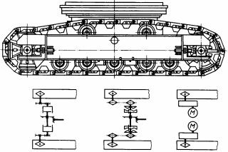 Каждое ходовое устройство состоит из движителя и подвески. Движитель находится в постоянном контакте (сцеплении) с опорной