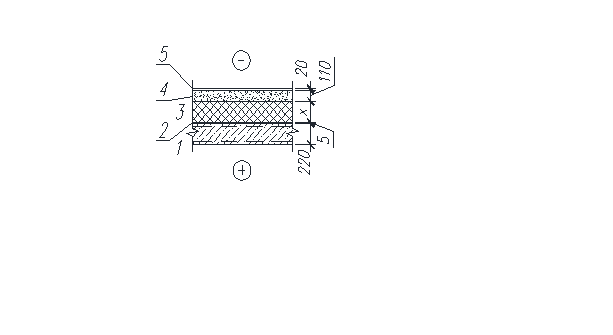стены: 1- штукатурка, 2-кирпичная стена; 3-утеплитель; 4- воздушная прослойка;