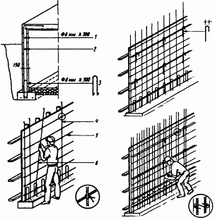 высоте и увязка их проволочными скрутками с рабочими стержнями; 6 - установка