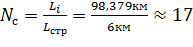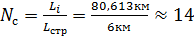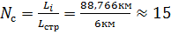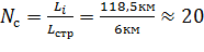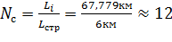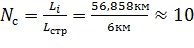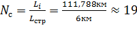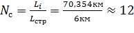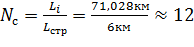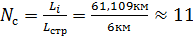 соответствует числу вхождений строительных длин кабеля в общую длину пролета,