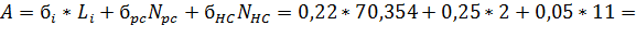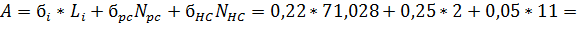 посчитать величину полных потерь на элементарном кабельном участке по формуле