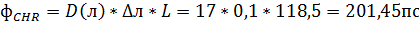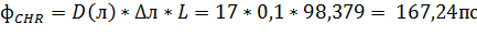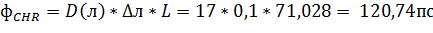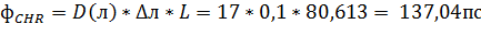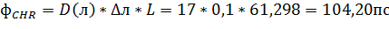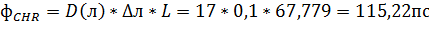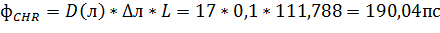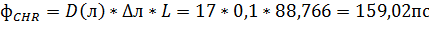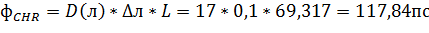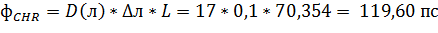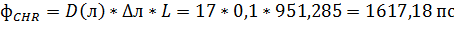 - хроматическая дисперсия линии связи, вычисляемая по