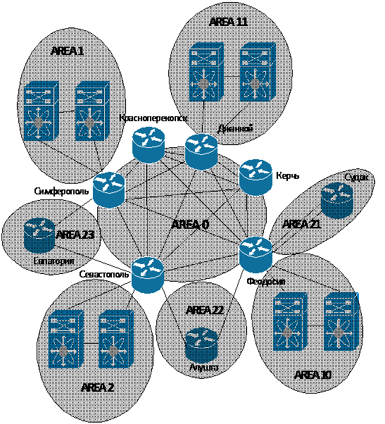 22. Схема согласования зон протокола OSPF