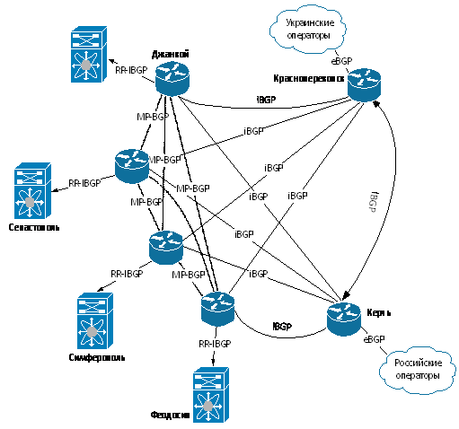 г. Керчь и г. Красноперекопск, на сети внедряется также протокол iBGP, который позволяет передать наиболее