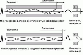 многомодовые. Можно грубо иллюстрировать, что в случае попадания излучения