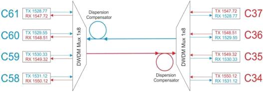 Рисунок 11. Включение компенсаторов дисперсии в систему DWDM
