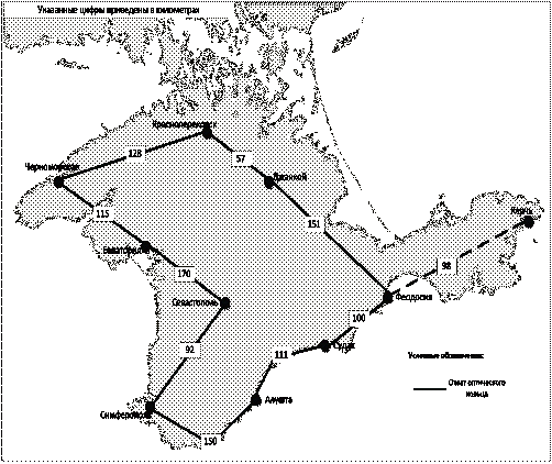 Расстояния от г. Симферополь до ключевых точек сети приведены в таблице