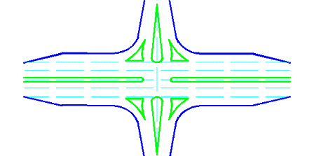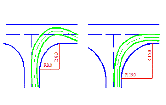 Значения радиусов закруглений резко сказываются на безопасности пересечений. Так, при одинаковой интенсивности движения на пересечениях с радиусами менее 15 метров, аварийность в 5-6 раз выше, чем на пересечениях с радиусами съездов более 15 метров