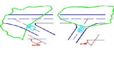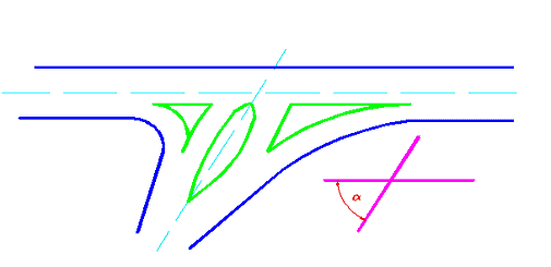 Лучшая обзорность на пересечениях в одном уровне достигается при значении угла пересечения 50 - 70о.