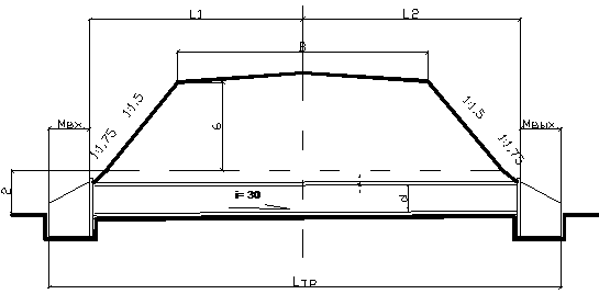 НН - высота насыпи от бровки до лотка трубы по оси дороги, 15 м;- уклон нижней части насыпи, 1:1,75;- диаметр трубы, 1,0 м;