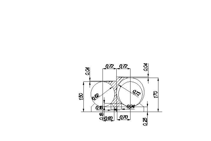 Количество нормальных звеньев в одной трубе 56 шт. Фактическое количество звеньев круглой двухочковой трубы d = 1,0 м, с учётом швов и двух конических звеньев на каждой трубе 116 шт, в том числе 112 нормальных и 4 конических звеньев. Требуемая длина трубы при этом составляет