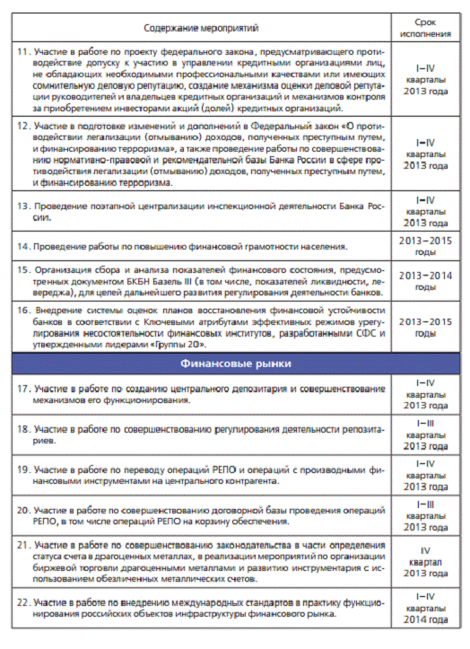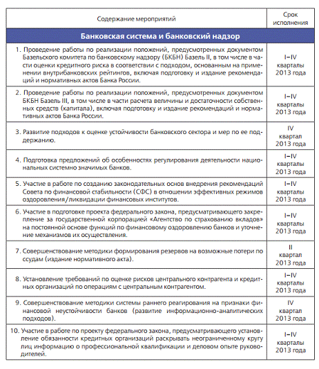 План важнейших мероприятий Банка России на 2013 год и период 2014 и 2015