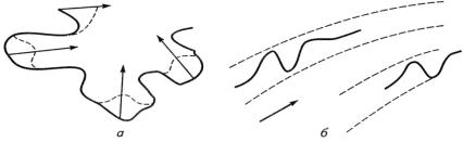 действием направленных импульсов тепловой энергии: а - случайное перемещение; б