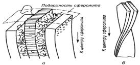 виде спирали. Плоские ламели образуют радиальный сферолит, а спиральные в