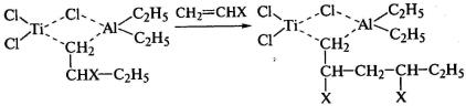 из связей в комплексе разрушается, и в его структуру входит молекула мономера,