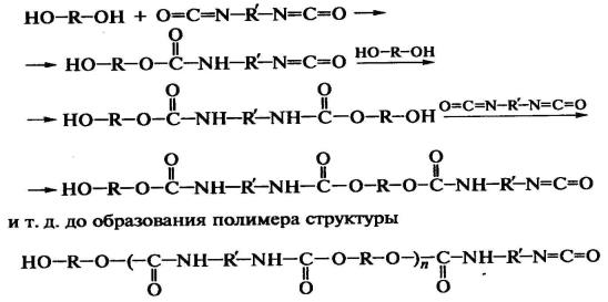 сложноэфирные группы. Аналогичен синтез полиуретанов из изоцианатов и гликолей:
