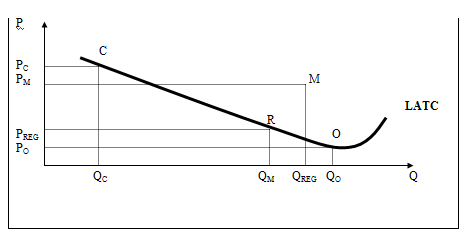 Вместе с тем проведение антимонопольной политики сопряжено с рядом объективных трудностей. Чтобы понять их происхождение обратимся к рис.3, на котором изображена типичная кривая долгосрочных издержек монополистической отрасли (LATC).