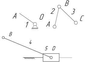 приєднанням до початкового механізму ( ланки 0,1 ) двох структурних груп (ланки 2,3 і 4,5), як показано на рис
