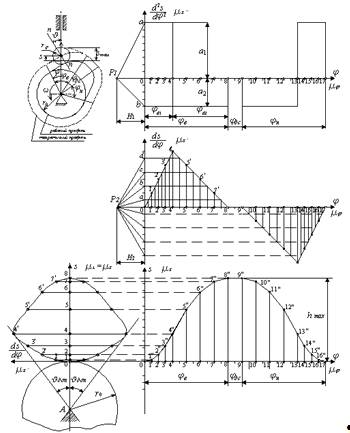 Профіль кулачка для періоду наближення будується аналогічно. Для періодів