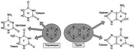 цитозин (С), тимин (Т) и урацил (U) (рис. 3).