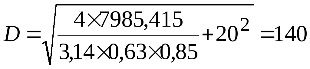 г) Размеры пневмокамеры диаметра пневмоцилиндра двухстороннего действия вычисляется по формуле: