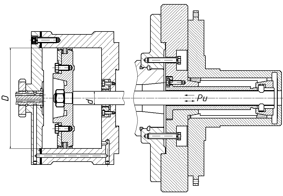 В данном приспособлении применяют цанговый зажим с пневматическим приводом двухстороннего действия. Исходное усилие определим по формуле: