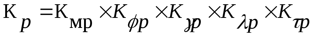 Кр – коэффициент, учитывающий фактические условия резания: