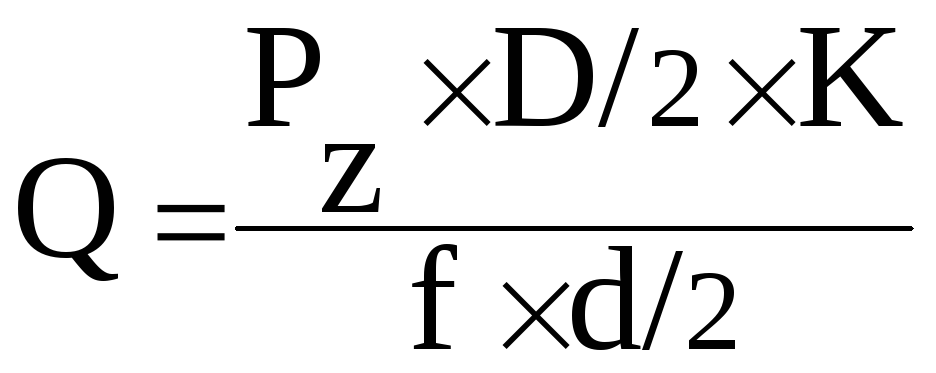 где Q – сила зажима, Н;
